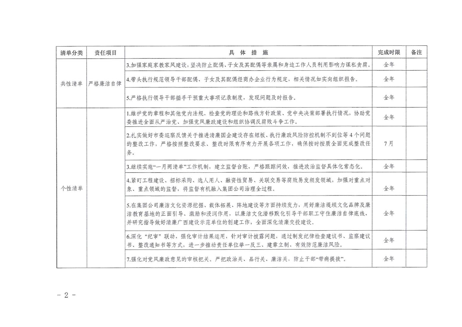 领导班子其他成员2024年度党风廉政建设“一岗双责”清单(二)