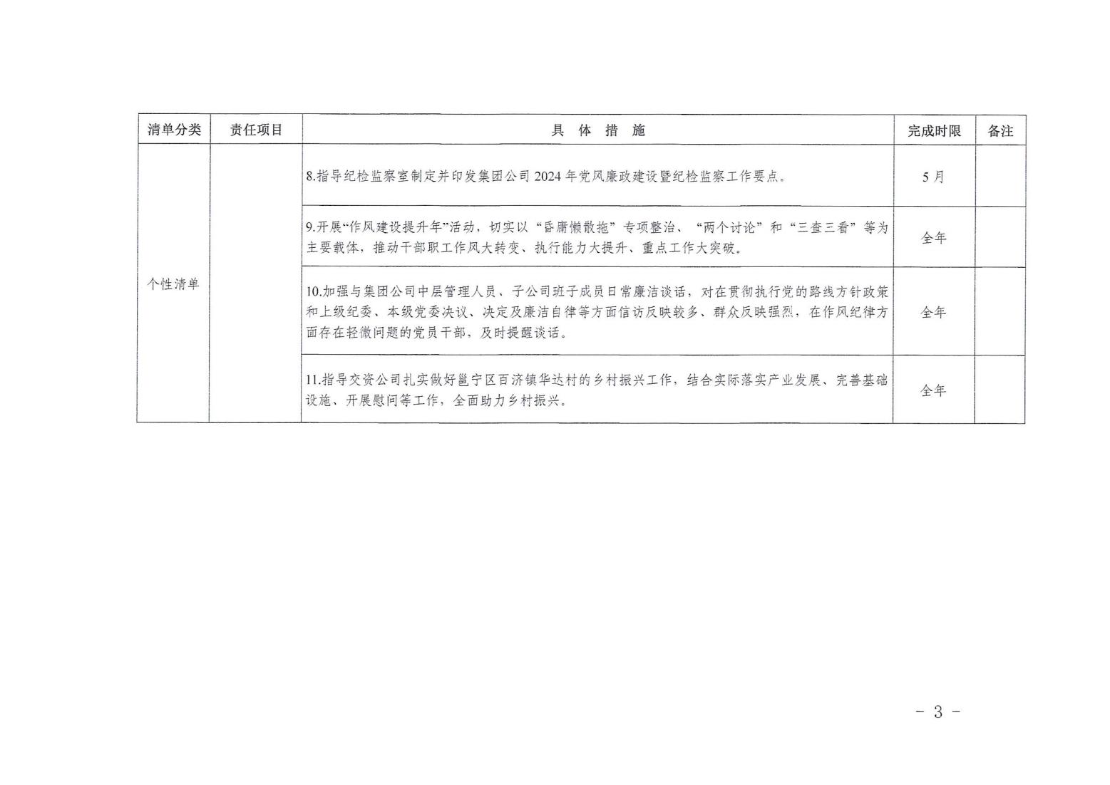 领导班子其他成员2024年度党风廉政建设“一岗双责”清单(三)
