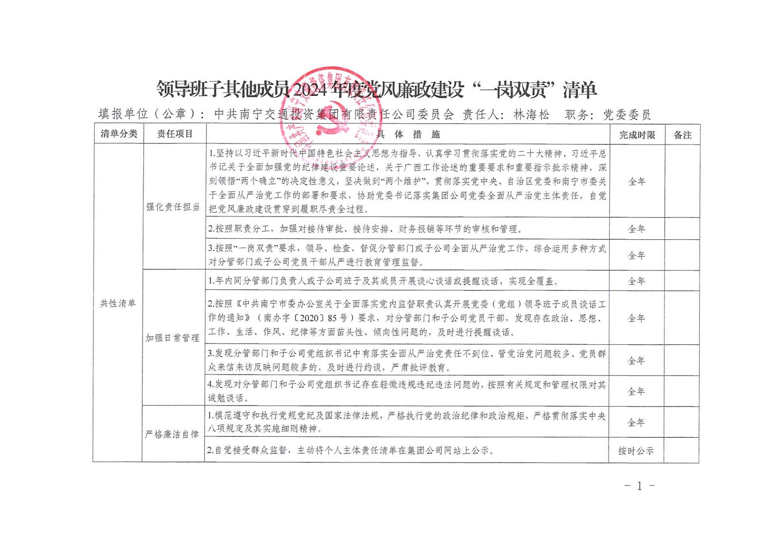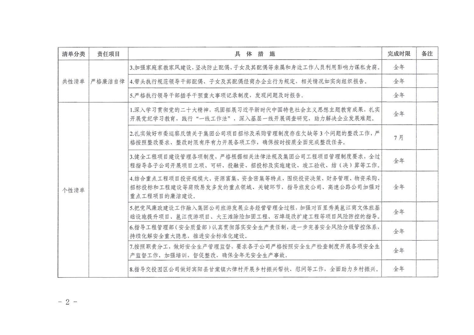 领导班子其他成员2024年度党风廉政建设“一岗双责”清单(二)