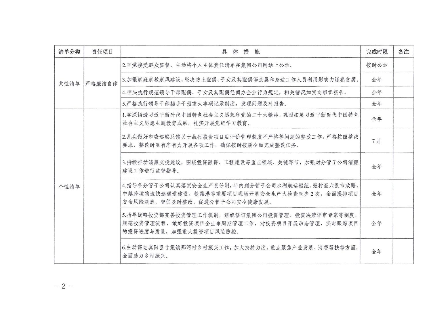 领导班子其他成员2024年度党风廉政建设“一岗双责”清单(六)