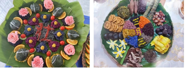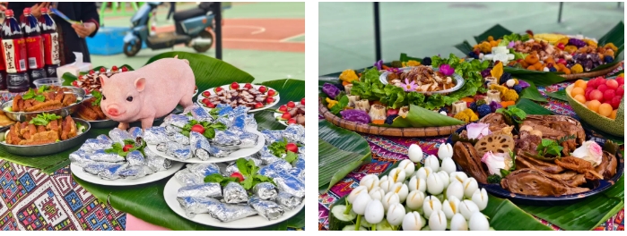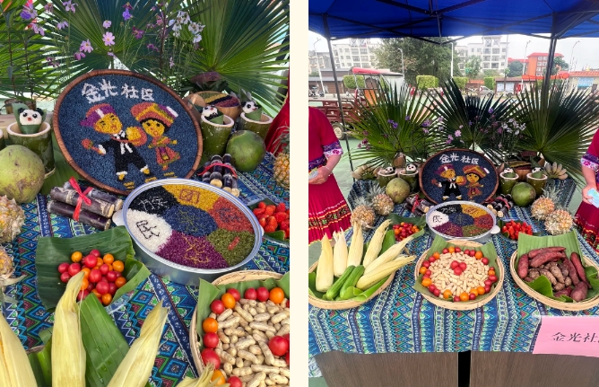 大家用簸箕拼盘将层次分明、色彩斑斓的各项珍馐有规律的摆放到簸箕中,从五谷杂粮的馥郁到山珍海味的鲜美,再到田园时蔬的清香,这些菜肴不仅口感独特,而且蕴含着丰富的民族文化内涵,体现了人们对美好生活的向往和追求。图为云顶赌场app公司职工前往社区参加活动拍摄的特色美食照片。