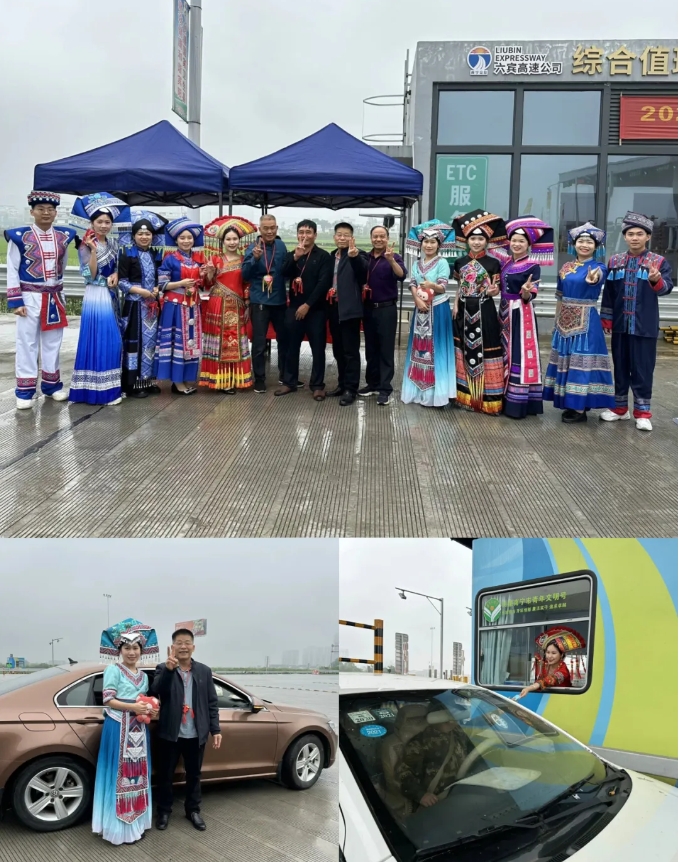 在六宾高速宾阳南收费站,六宾高速公司的志愿者们身穿民族特色服装,化身高速公路上的“阿哥”“阿妹”,在提供出行服务的同时,为过往司乘人员送上了满满的祝福以及具有民族特色的绣球、香囊,形成收费站上一道靓丽的风景线。