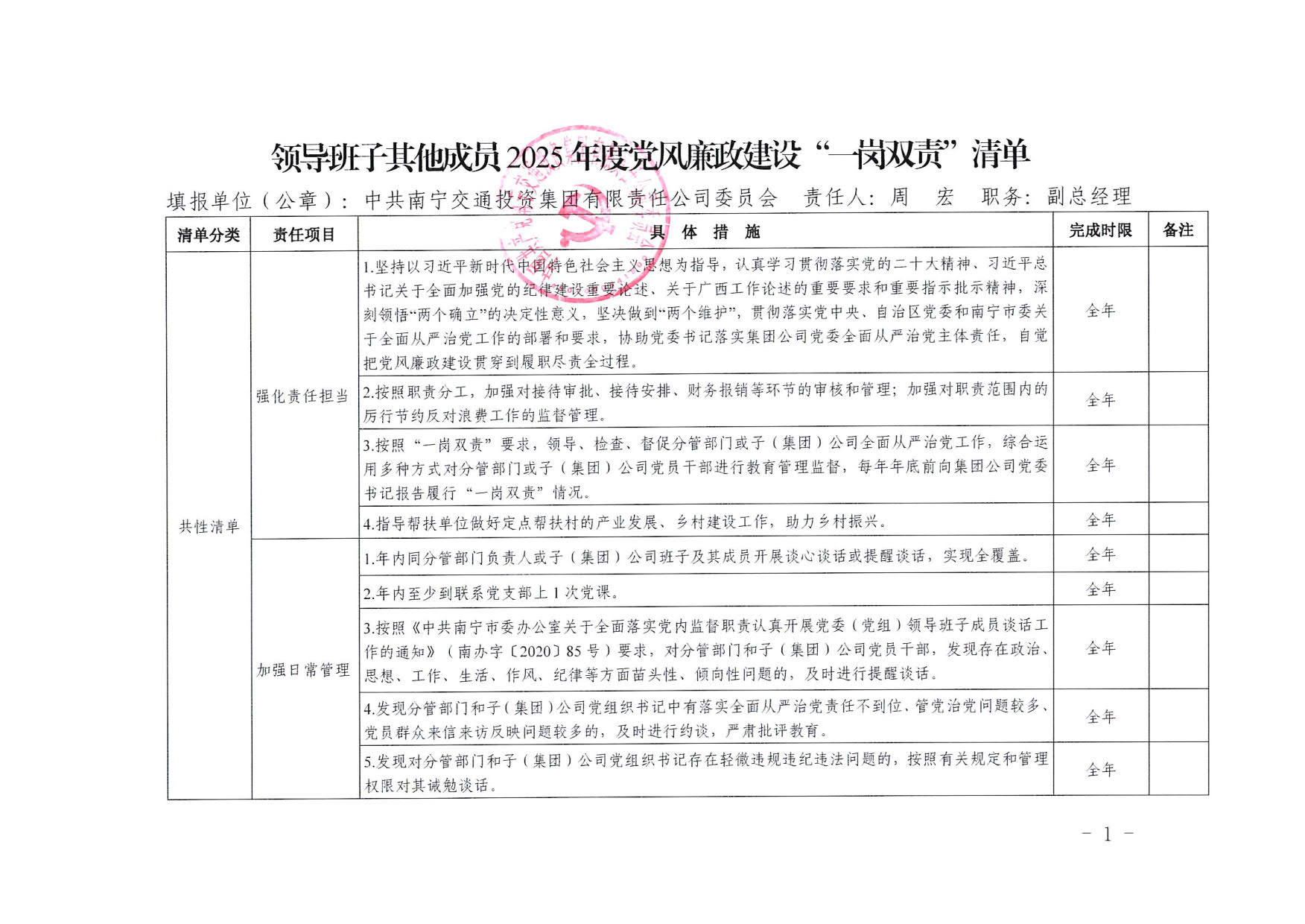 云顶赌场app 领导班子其他成员2025年度党风廉政建设“一岗双责”清单(七)