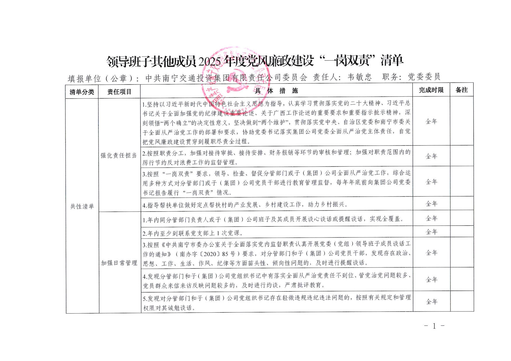 云顶赌场app 领导班子其他成员2025年度党风廉政建设“一岗双责”清单(七)
