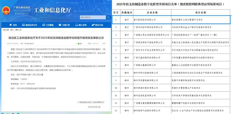 南宁矿业云顶赌场app“绿色智慧矿山综合管理平台”成功入选自治区工业和信息化厅2025年支持制造业数字化转型升级项目