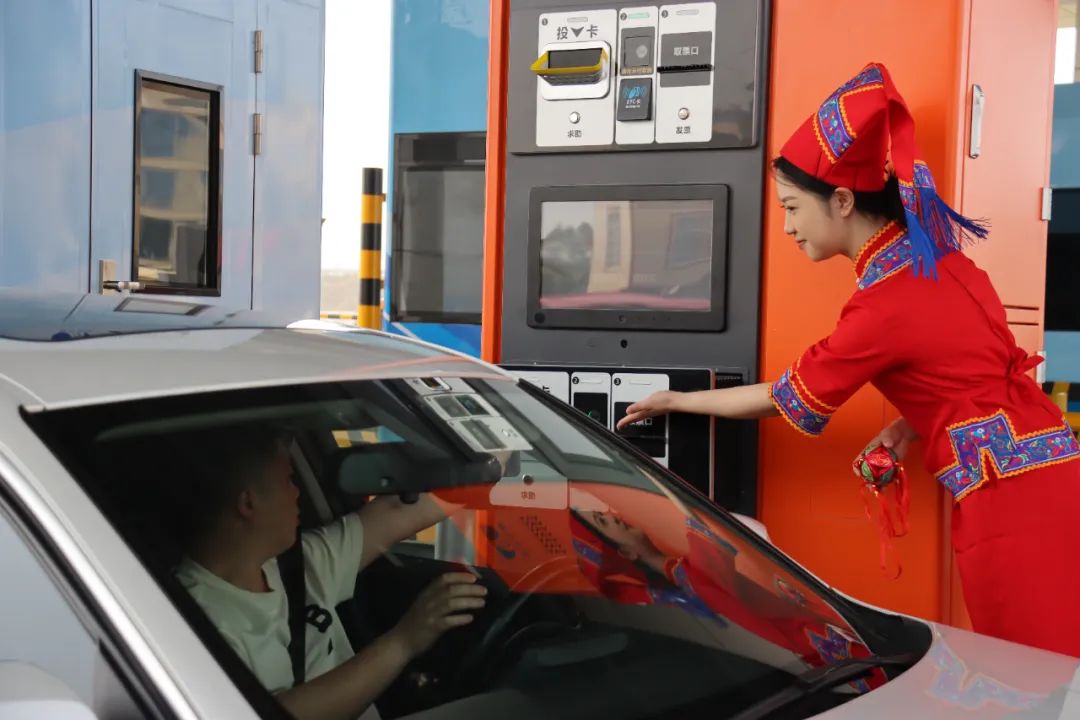 在上横收费总站,当班人员身穿特色民族服装,化身“阿哥”“阿妹”,以崭新靓丽形象迎接广大司乘,以倾心的微笑开展文明服务,将民族特色与收费窗口服务相融合,成为高速路上一道靓丽风景线。