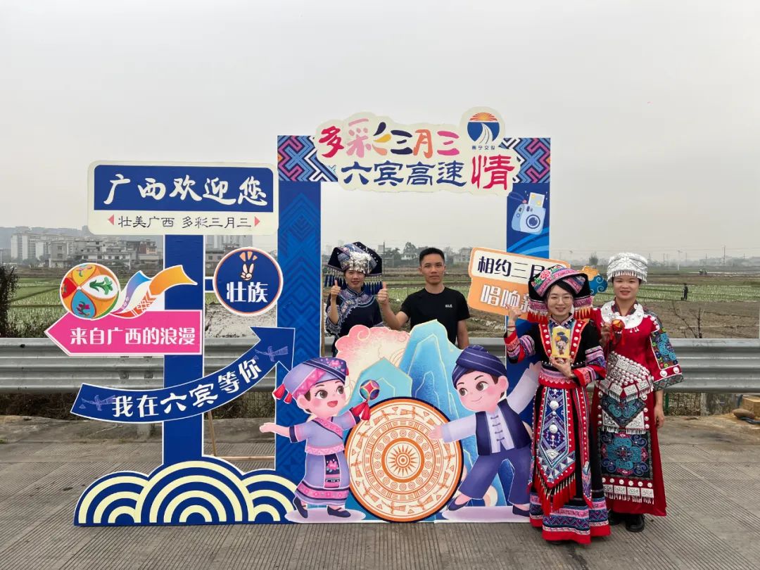 六宾收费总站则通过在宾阳南收费站设置“三月三”特色打卡点,吸引过往司乘纷纷驻足拍照打卡、发视频称赞,活动现场欢声笑语不断。