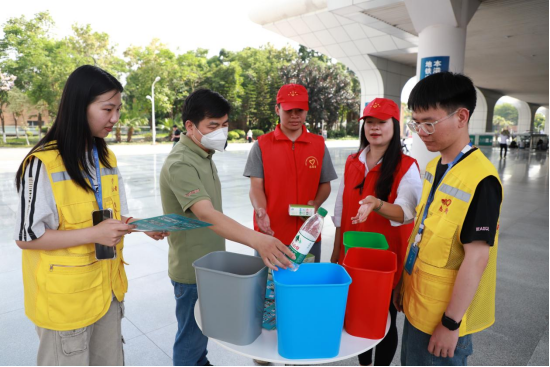 5月13日,南宁矿业云顶赌场app联合康城汽车云顶赌场app在南宁东站开展“垃圾分类齐参与 四色分类记心间”志愿服务活动,将绿色文明课堂搬进交通枢纽,通过沉浸式互动体验让垃圾分类知识“活起来”。