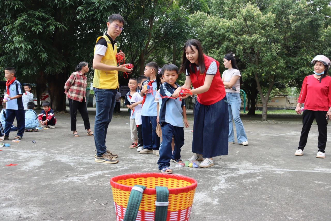 课堂结束后,在志愿者们的带领下,孩子们来到教室外参与抛绣球、投壶、套圈等民族传统体育项目。志愿者与孩子们分组协作、相互配合,完成了一项项挑战,激励孩子们享受运动的快乐,观察到、感受到生活中的民族艺术的魅力,丰富了文化生活和情感体验。