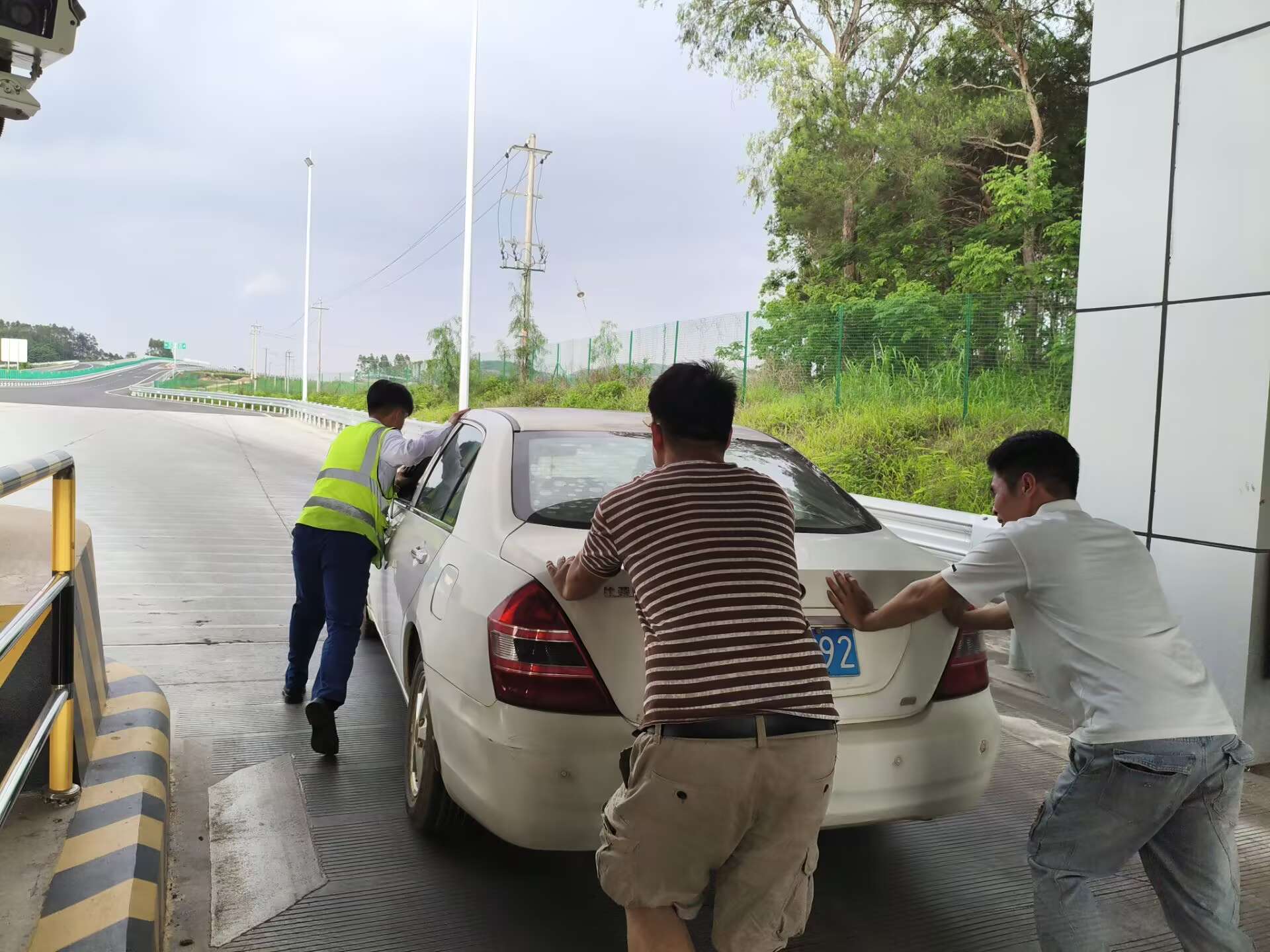 6月11日17时许,一辆白色轿车在途经林横高速陶圩收费站完成缴费后突发故障,引擎无法启动。当班收费员蒋雨洁与覃新恒见状立即上前,并在第一时间将情况上报监控中心,随后帮助司机将车辆推至外广场安全区域,保障了收费现场车辆的顺畅通行。此外,收费员还主动协助司机排查车辆故障。在收费员的帮助下,车辆顺利启动,司机紧握收费员的手连声道谢:“十分感谢你们的帮助,为南宁高速的暖心服务点赞!”