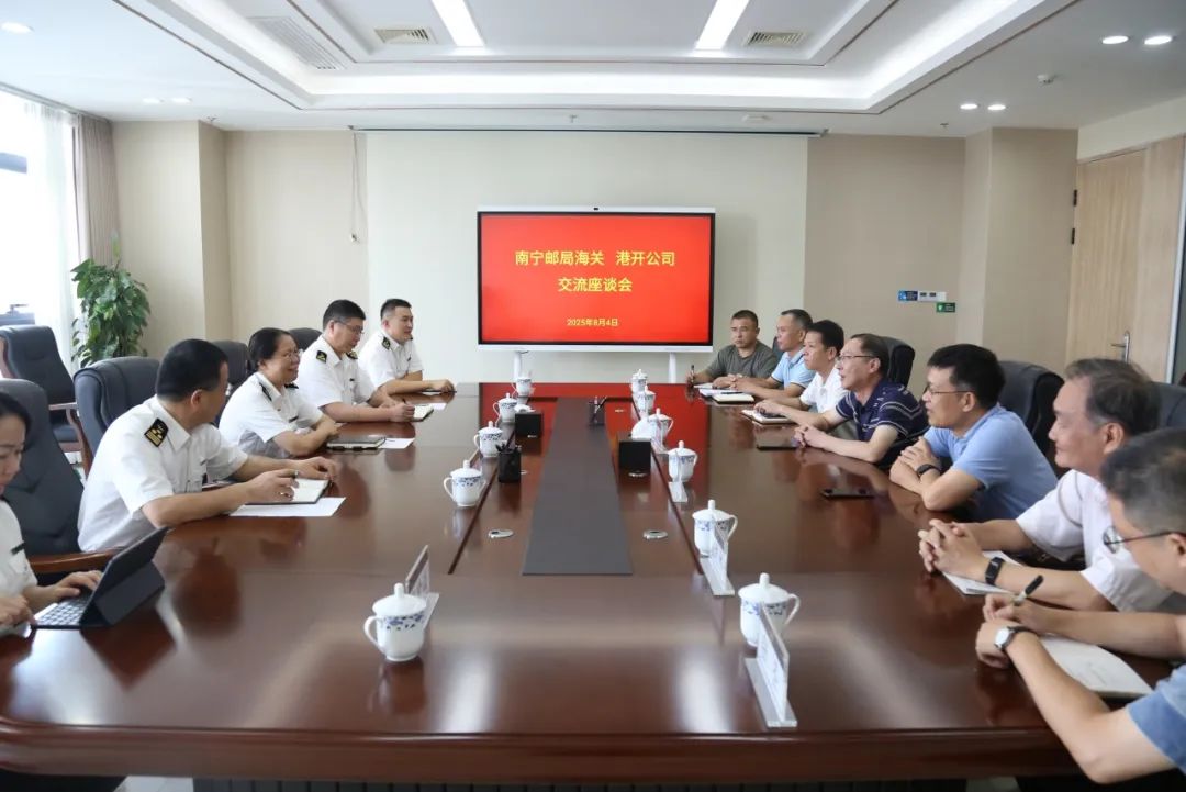 党委书记、董事长、南宁国际铁路港开发运营有限公司(简称港开公司)党支部书记、董事长曹壮带队拜访南宁邮局海关,与南宁邮局海关党委书记、关长徐枫就进一步深化合作、促进业务发展等内容进行交流座谈。