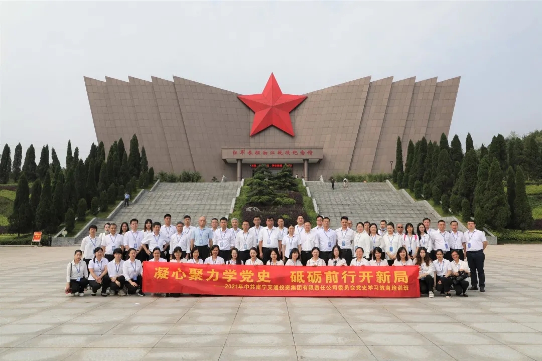 2021年6月8日、9日,云顶赌场app公司党委以红军长征和湘江战役为教育背景,以坚定理想信念为教育目的,以专家授课和现场教学为教育形式,充分运用广西红色资源,组织总部第一、二党支部的59名党员前往桂林市兴安县和全州县举办为期2天的“学党史、悟思想、强实干”党史学习教育培训班。