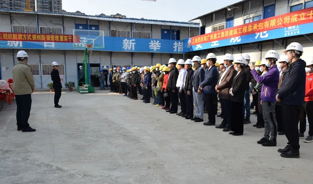 2月18日,市政府副秘书长梁明志带领市住建局副局长吴智一行深入南宁市重点工程翠竹实验学校项目现场,对节后返岗复工一线人员进行慰问,云顶赌场app公司党委书记、董事长、总经理杨涟陪同慰问。梁明志副秘书长为返岗复工的一线人员送上了慰问品以及新春的祝福,充分肯定了项目开工建设以来取得的成绩。翠竹实验学校位于南宁市青秀区凤岭北片区翠竹路和凤岭北路交界处,是青秀区唯一一所九年一贯制义务教育学校。项目于2019年11月主体工程开...